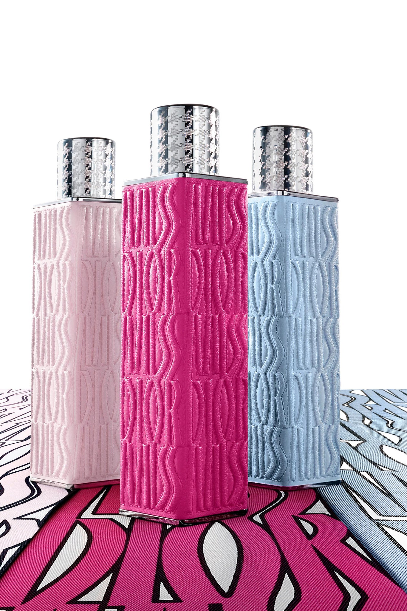 המוטיב בסגנון Logomania, בגוונים תכלת רך, ורוד פסטל ו־ורוד פופ, מציג סגנון נועז ואלגנטי שמגלם באופן מושלם את זהות Miss Dior.